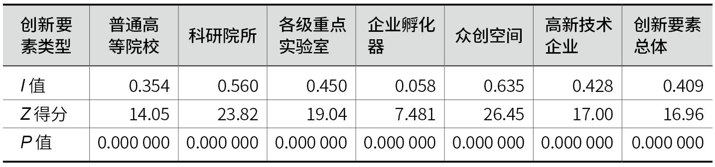 表3 广州市创新要素全局Moran's I指数得分