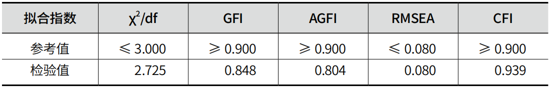 基于AMOS软件统计研究模型的参数情况,在变量拟合方面,本研究模型的拟合指标均处于可接受或者优秀的水平,因此模型关系合理。
